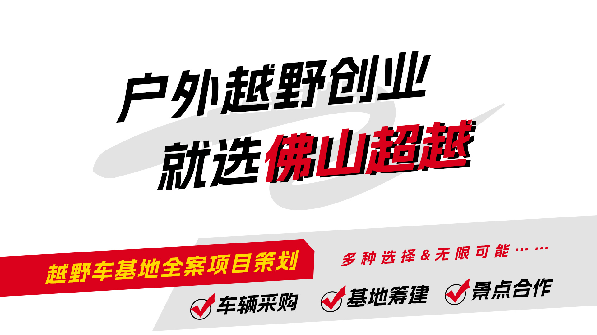 是一家專注于戶外越野車基地整體解決方案的專業(yè)機構(gòu),不僅提供豐富多樣的全類型越野車型資源,更涵蓋項目策劃、場地設(shè)計及運營指導等一體化服務。我們憑借精準的市場定位與獨到的策劃能力,為客戶量身定制高效可行的越野車基地項目方案,同時,利用專業(yè)團隊進行場地創(chuàng)意設(shè)計,確保基地設(shè)施布局合理且富有吸引力。此外,我們還提供全程運營指導服務,從開業(yè)籌備到日常管理,助力合作伙伴優(yōu)化運營流程、提升服務質(zhì)量,共同構(gòu)建卓越的戶外越野體驗平臺,著力推動行業(yè)發(fā)展。